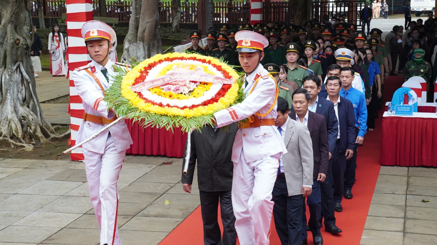 Báo công và đại biểu, đoàn viên, thanh niên dâng hoa tại Nhà thờ Bác Hồ.