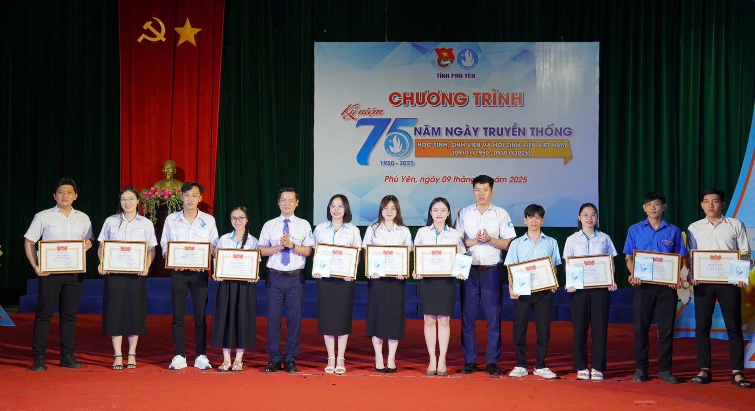 Thường trực Tỉnh Đoàn, Hội Sinh viên Việt Nam tỉnh trao giải thưởng “Sao Tháng Giêng” tỉnh Phú Yên năm học 2023-2024 cho sinh viên.