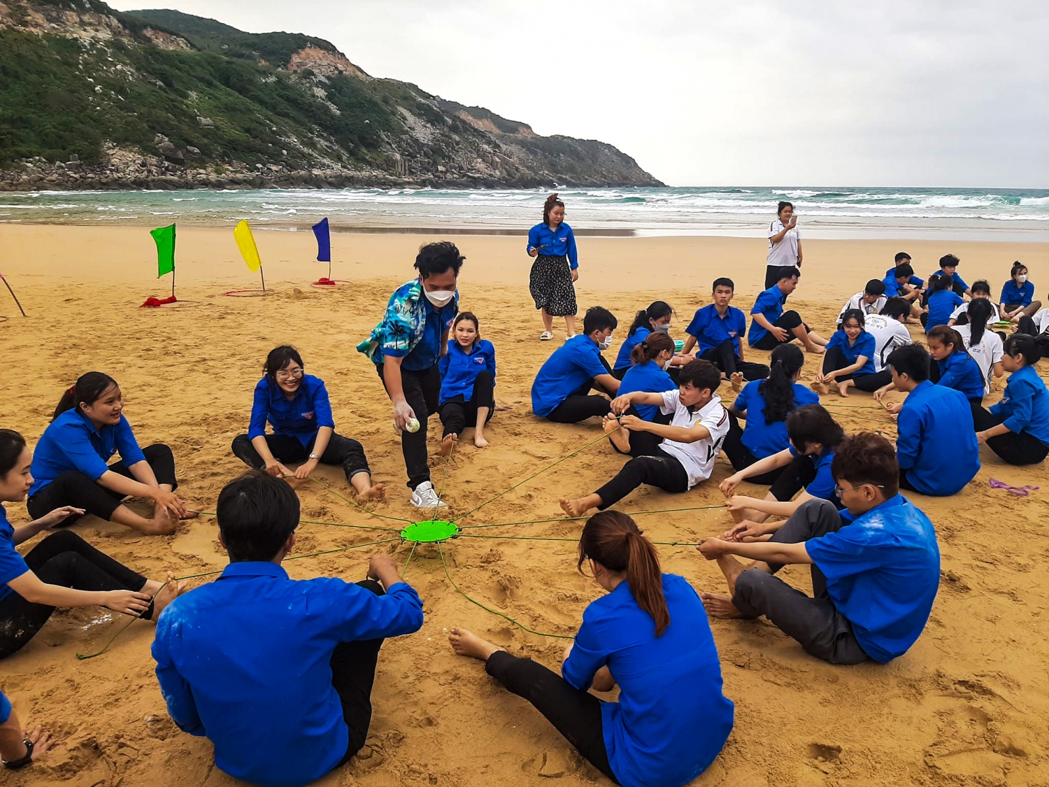 Các học viên tham gia các hoạt động trò chơi cộng đồng, kỹ năng làm việc nhóm tại chương trình tập huấn.