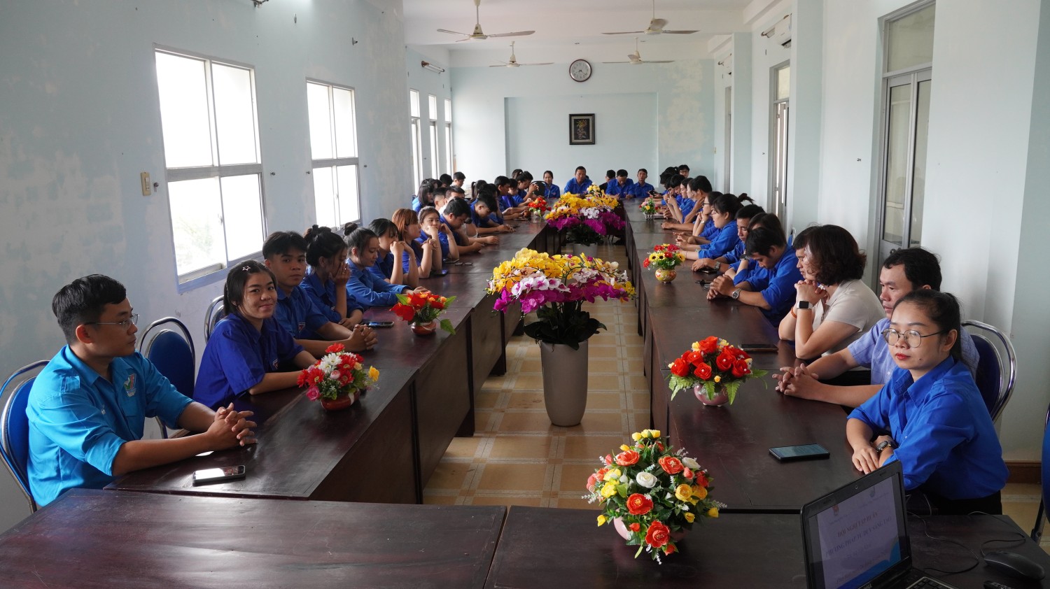 Tiến sĩ Trần Thị Nguyệt Cầm - Thành viên mạng lưới hỗ trợ khởi nghiệp đổi mới sáng tạo quốc gia - Trưởng phòng Quản lý đào tạo Trường CĐ Công Thương miền Trung trao đổi với đoàn viên, thanh niên tại chương trình tập huấn.