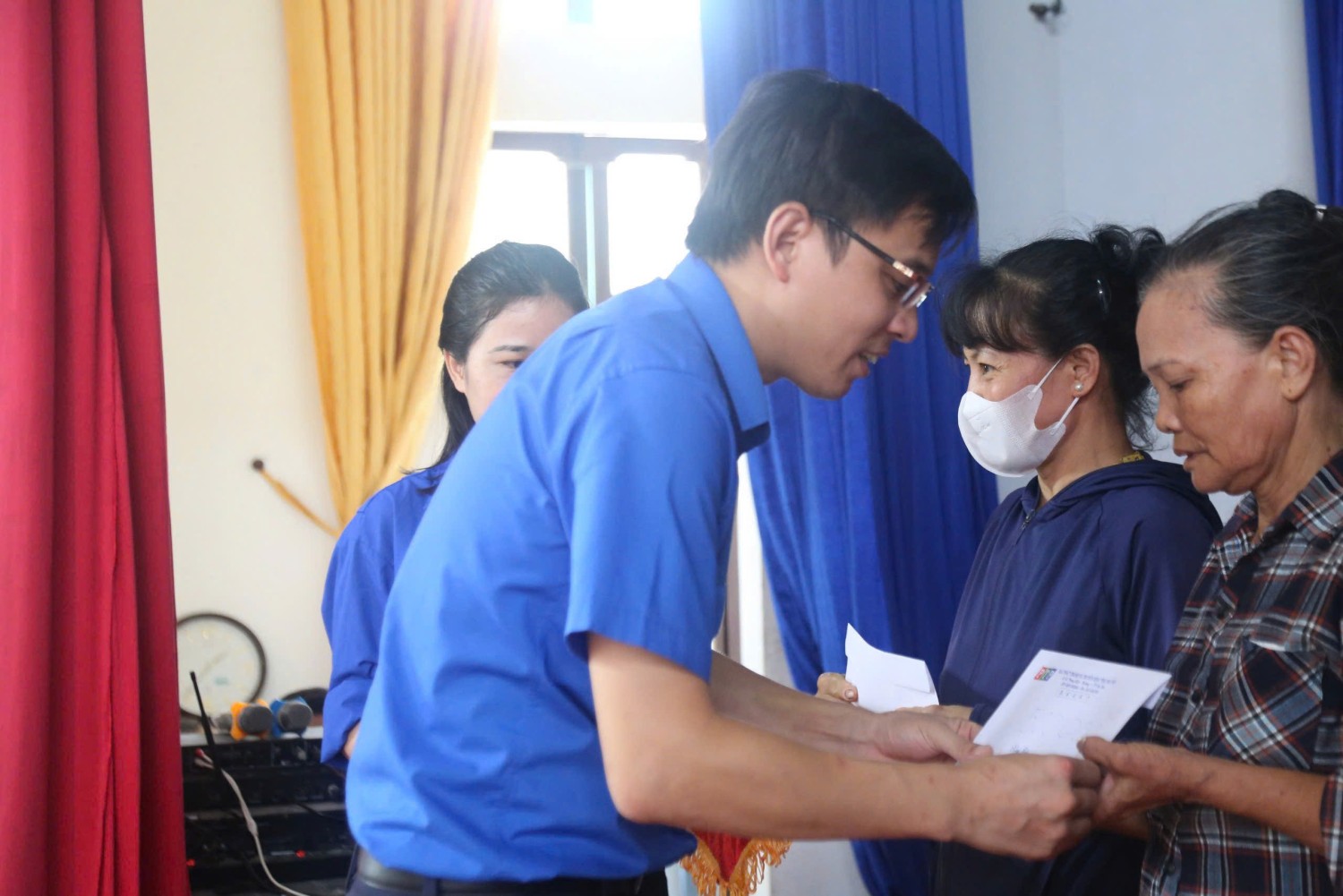 Ban tổ chức trao quà cho bà con nhân dân thôn Hữu Chung.