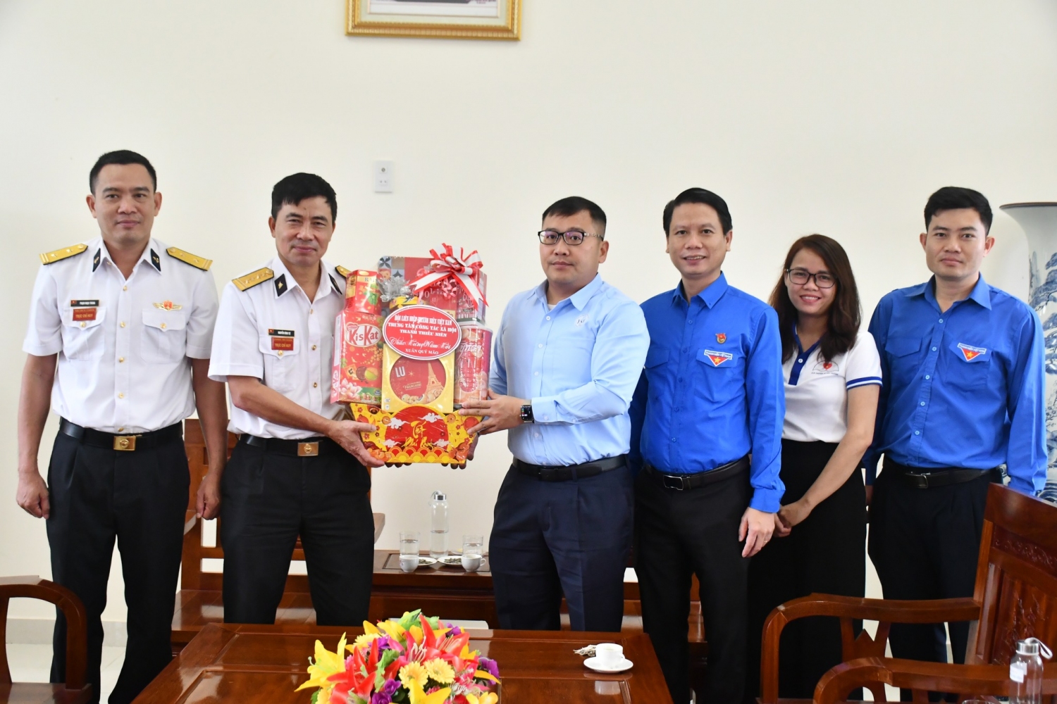 Đ/c Lương Minh Tùng, Bí thư Tỉnh Đoàn, Chủ tịch Hội LHTN Việt Nam tỉnh và Đ/c Nguyễn Thanh Hân, Giám đốc Trung tâm Công tác xã hội Thanh thiếu niên trực thuộc Hội LHTN Việt Nam thăm, chúc tết Lữ đoàn Tên lửa bờ 682.