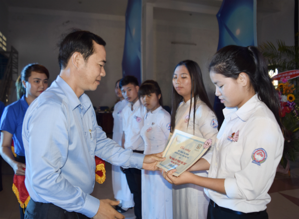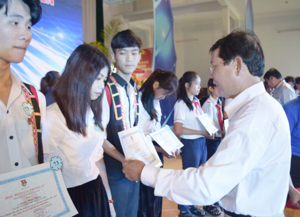 trao học bổng cho các em học sinh.