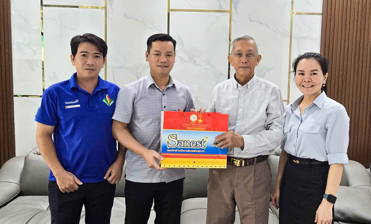 Đồng chí Võ Duy Kha, Phó Bí thư Tỉnh Đoàn thăm, tặng quà Thiếu tá Ngô Văn Định, Trưởng ban liên lạc Bến tàu Không số Vũng Rô, nguyên chiến sĩ K60 (đơn vị bảo vệ bến Vũng Rô).