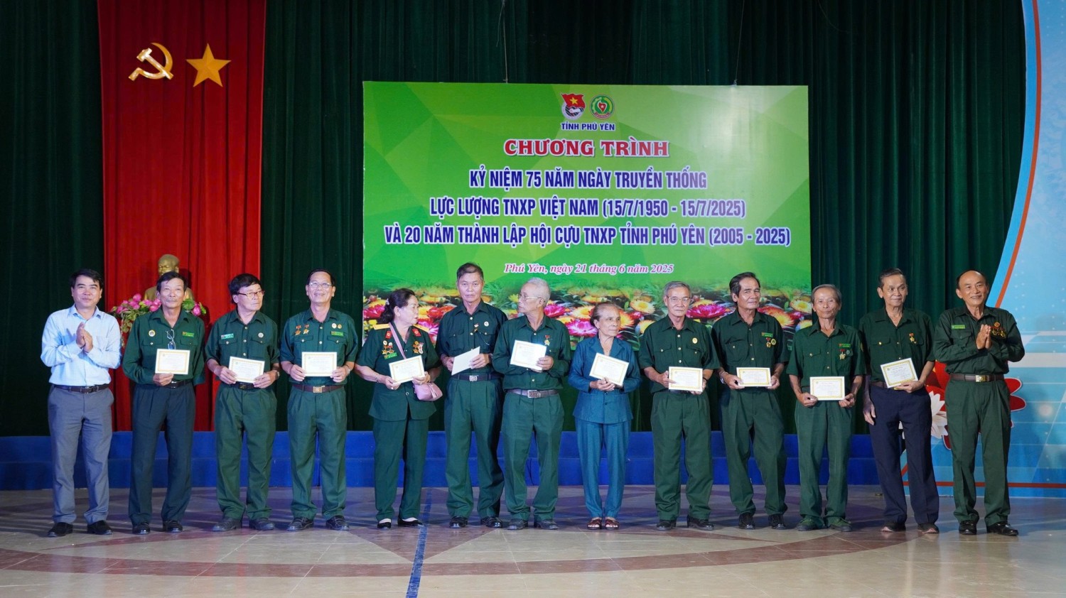 Tại chương trình, các đại biểu đã cùng nhau ôn lại truyền thống cách mạng hào hùng của dân tộc, quê hương, truyền thống lực lượng TNXP qua 75 năm qua. Dịp này, Chủ tịch UBND tỉnh Phú Yên đã trao tặng bằng khen đối với Hội cựu TNXP tỉnh Phú Yên đã có thành tích xuất sắc trong xây dựng và phát triển Hội cựu TNXP tỉnh, nhân kỷ niệm 20 năm thành lập Hội (2005 - 2025); Trung ương Hội cựu TNXP Việt Nam trao tặng “Kỷ niệm chương Cựu Thanh niên xung phong Việt Nam” cho 29 cô chú hội viên cựu TNXP trên địa bàn tỉnh đã có thành tích xuất sắc trong công tác xây dựng Hội và các phong trào Cựu TNXP Việt Nam và tặng bằng khen cho 03 cá nhân đã có thành tích xuất sắc trong hoạt động và xây dựng Hội cựu TNXP tỉnh Phú Yên giai đoạn 2005 – 2025.