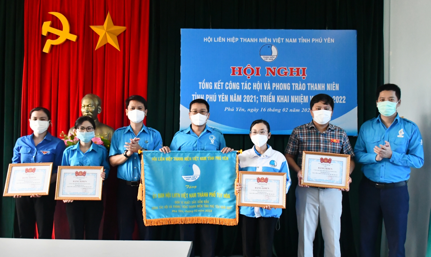 Thường trực Hội LHTN Việt Nam tỉnh Phú Yên trao cờ thi đua và danh hiệu xuất sắc cho các đơn vị có thành tích xuất sắc trong công tác Hội và phong trào thanh niên tỉnh Phú Yên năm 2021.