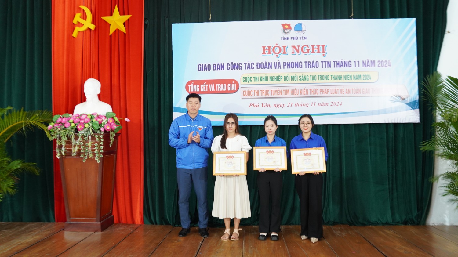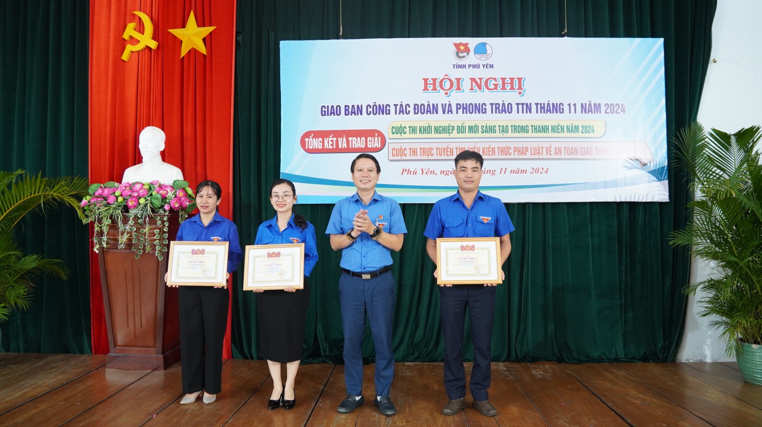 Thường trực Tỉnh Đoàn trao giải tập thể có thành tích xuất sắc Cuộc thi trực tuyến tìm hiểu kiến thức pháp luật về an toàn giao thông năm 2024.