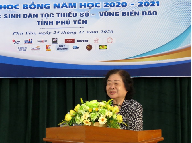 Đồng chí Trương Mỹ Hoa - Nguyên Bí thư Trung ương Đảng, Nguyên Phó Chủ tịch nước, Chủ tịch Quỹ học bổng Vừ A Dính, Chủ nhiệm Câu lạc bộ “Vì Hoàng Sa - Trường Sa thân yêu” cho biết: Quỹ học bổng Vừ A Dính được thành lập 20 năm đã mang đến hàng chục nghìn suất học bổng cho các em học sinh, sinh viên dân tộc thiểu số có hoàn cảnh khó khăn vươn lên học tốt, rèn luyện tốt trong cả nước. Những suất học bổng dành tặng học sinh Phú Yên không chỉ mang giá trị vật chất mà còn gửi gắm những tình cảm yêu thương. Qua đây, các em thấy được sự quan tâm, chăm lo của xã hội, sự công bằng bình đẳng không phân biệt khoảng cách giữa trẻ em miền núi hay miền biển.