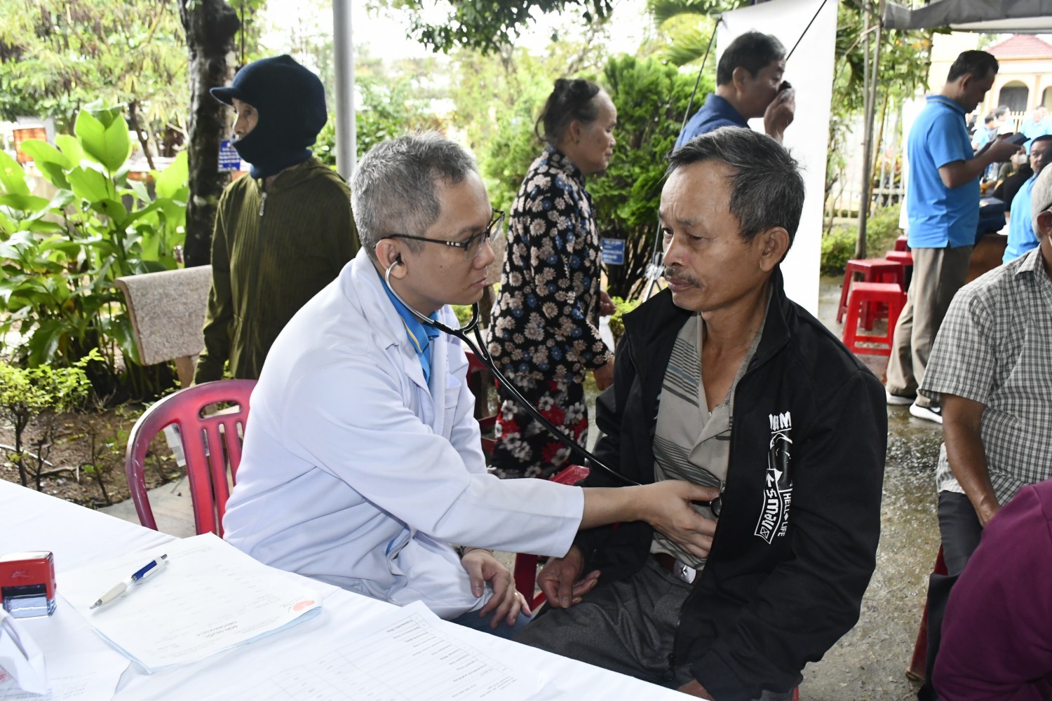 Các y, bác sĩ thuộc Viện tim TP. Hồ Chí Minh khám sàn lọc bệnh tim mạch cho người dân có hoàn cảnh khó khăn huyện Sơn Hòa.