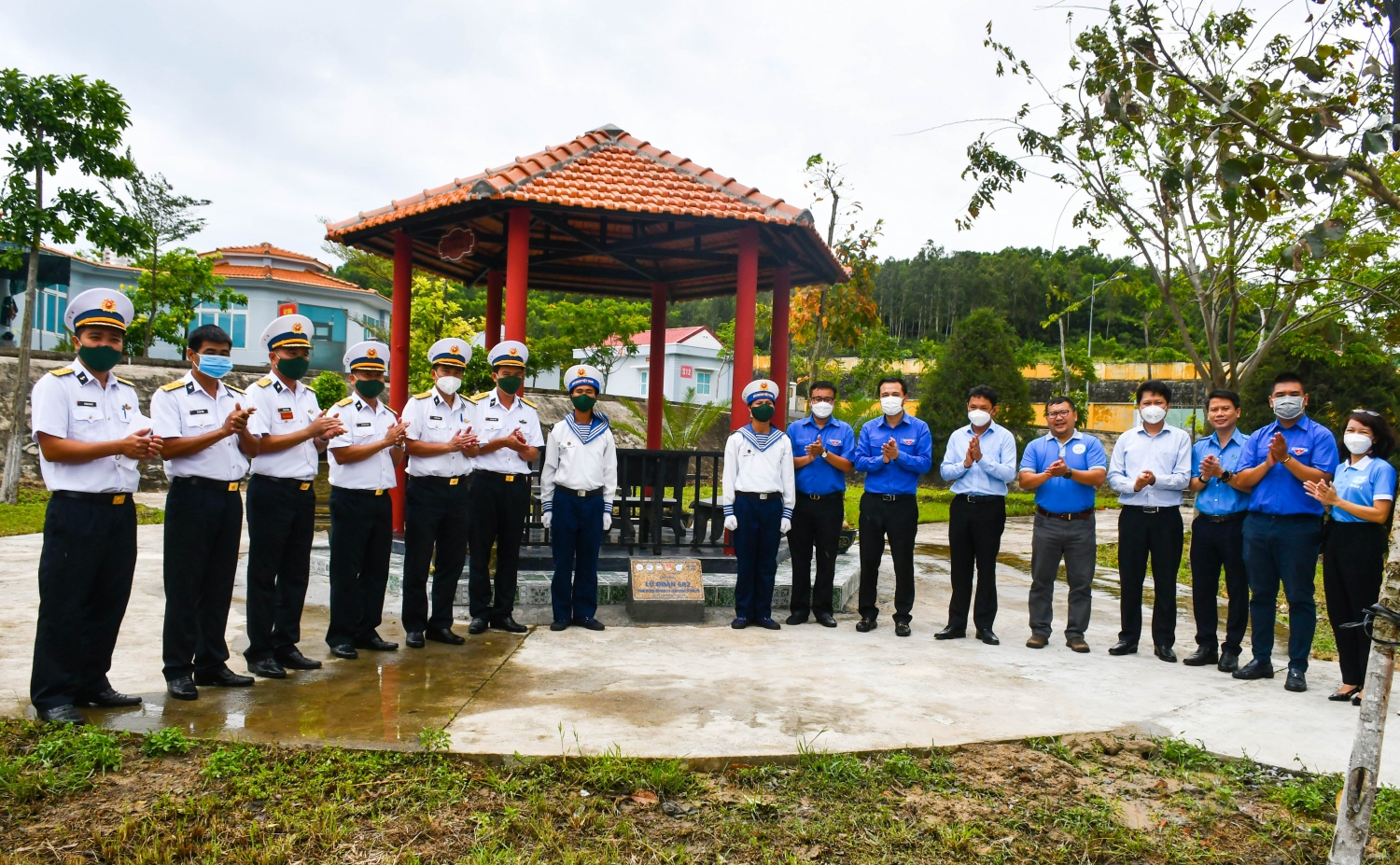 Đoàn trao tặng bảng tượng trưng công trình thanh niên “Nhà sinh hoạt đồng đội” và 02 bộ bàn bóng bàn cho cán bộ, chiến sỹ Lữ đoàn Tên lửa bờ 682 (Vùng 4 Hải Quân).