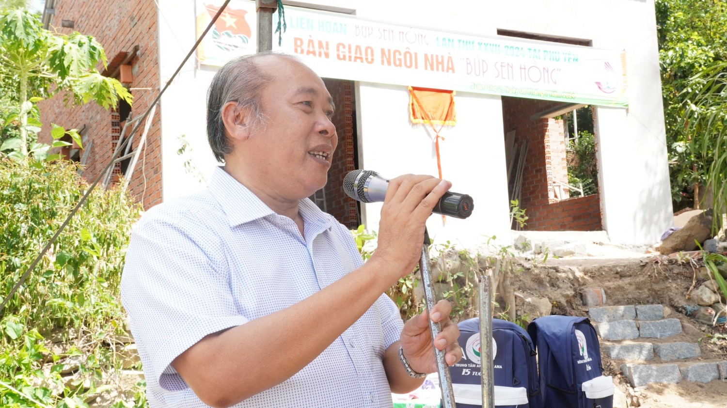 Phát biểu lại lễ bàn giao, anh Phạm Ngọc Tuyền, Giám đốc Nhà Thiếu nhi Thành phố Hồ Chí Minh, Chủ nhiệm Câu lạc bộ Nghiệp vụ khu vực phía Nam thay mặt gần 2.000 đội viên, thiếu nhi, phụ trách đến từ các 39 tỉnh, thành tham gia Liên hoan Búp sen hồng lần thứ XXVII, chia sẻ niềm vui với gia đình hai em; đồng thời mong hai em tiếp tục nỗ lực vươn lên học tập và cuộc sống để trở thành người có ích cho xã hội.