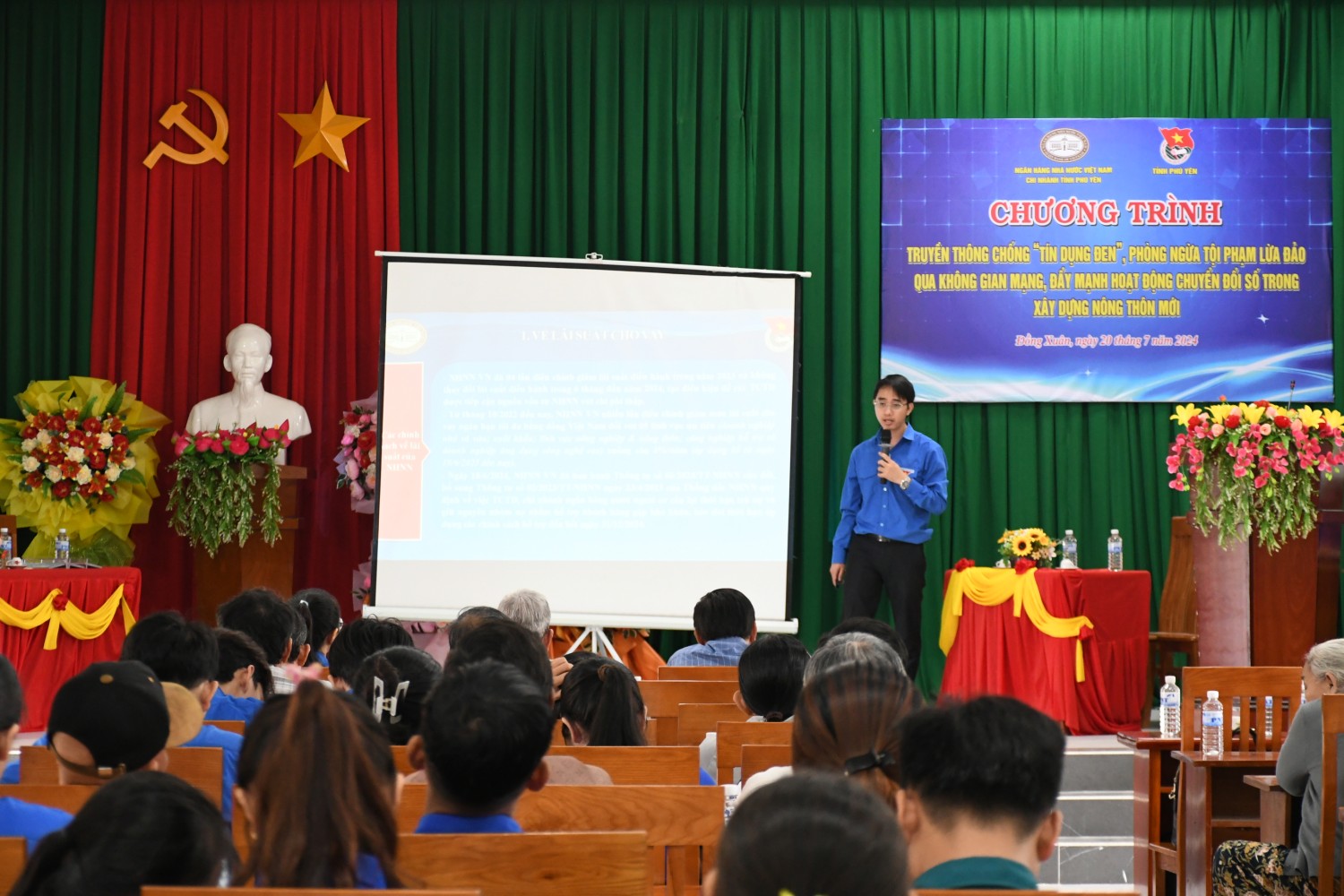 Sáng ngày 20/7, tại UBND xã Xuân Phước (huyện Đồng Xuân), Tỉnh Đoàn phối hợp Ngân hàng Nhà nước chi nhánh Phú Yên tổ chức chương trình Truyền thông chống tín dụng đen, phòng ngừa tội phạm lừa đảo qua không gian mạng, đẩy mạnh hoạt động chuyển đổi số trong xây dựng nông thôn mới cho 150 đoàn viên, thanh niên, người dân trên địa bàn huyện Đồng Xuân.