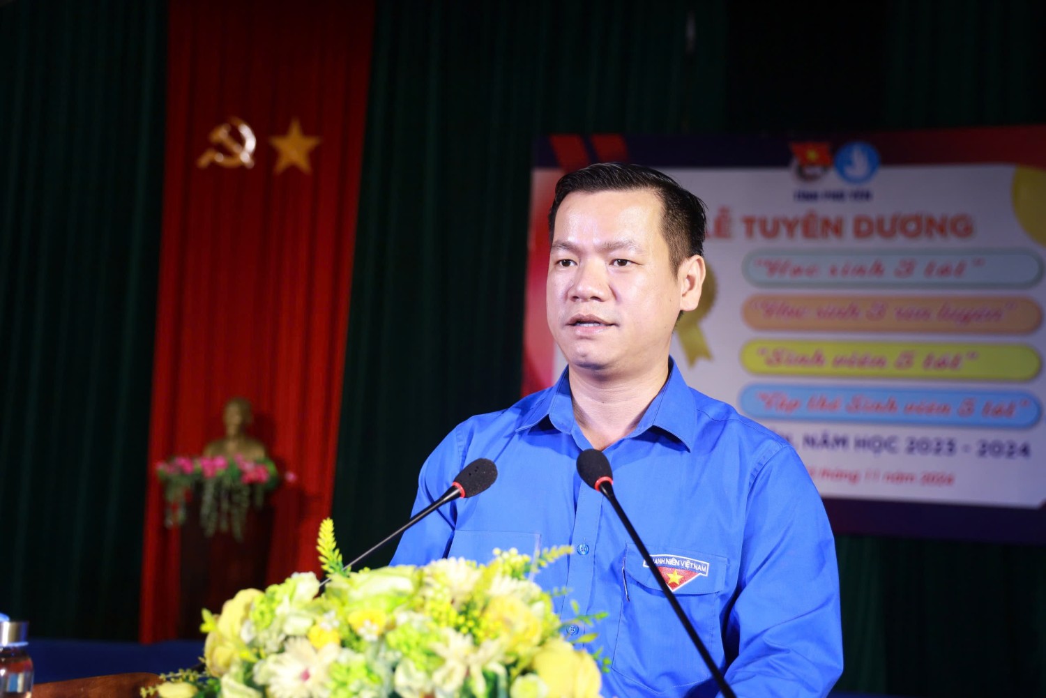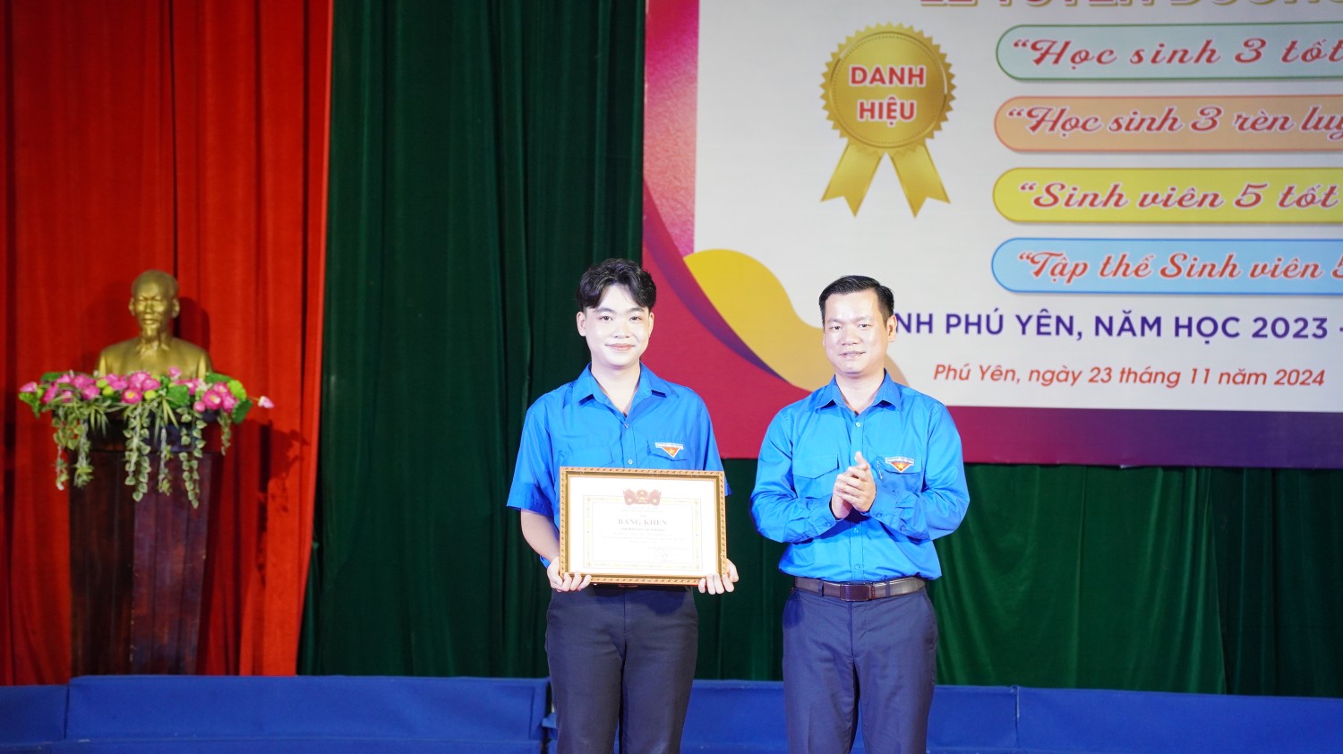 Anh Võ Duy Kha, Phó Bí thư Tỉnh Đoàn, Chủ tịch Hội Sinh viên Việt Nam tỉnh trao danh hiệu “Học sinh 3 rèn luyện” cấp tỉnh cho 1 học sinh.
