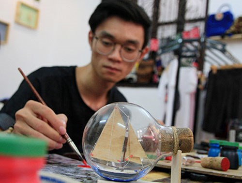 Từ những que kem, gỗ vụn… khi được lượm lại, rửa sạch, Huy có thể “biến” chúng thành mô hình máy bay B52, thuyền ngọc trai đen, tàu Titanic hay người gỗ. Hoặc với những bóng đèn, chai lọ thủy tinh, chàng trai này có thể biến thành đại dương mênh mông và lọt thỏm vào bên trong bóng đèn là mô hình những con thuyền. Hay chỉ cần vài miếng nhôm gỉ, cái bánh xe bị hỏng từ đồ chơi con nít, Huy có thể tạo ra mô hình xe Vespa đẹp tuyệt vời…
