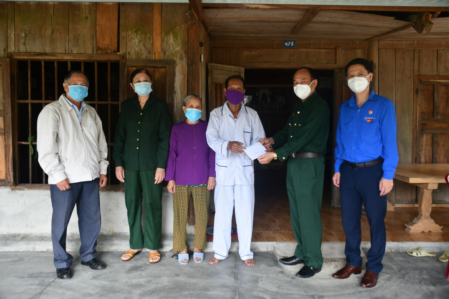 Đoàn thăm và động viên trao quà cho ông Trần Quân, là Cựu Thanh niên xung phong có hoàn cảnh đặc biệt khó khăn ở xã Sơn Nguyên, huyện Sơn Hòa.