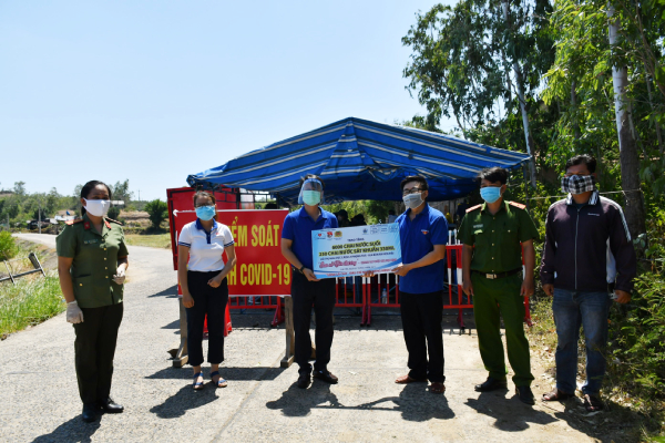 Đoàn trao tặng nhu yếu phẩm cho lực lượng chức năng đang làm nhiệm vụ phòng chống dịch Covid-19 tại địa bàn xã An Hòa Hải (H. Tuy An).
