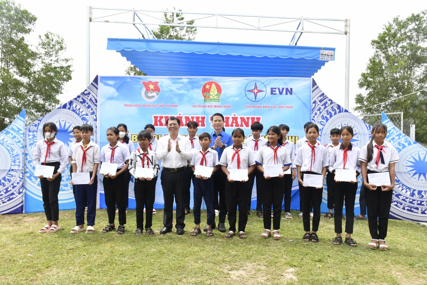 Thường trực Tỉnh Đoàn và lãnh đạo Công ty Thủy điện Sông Ba Hạ trao học bổng cho các em học sinh có hoàn cảnh khó khăn của Trường Tiểu học và Trung học cơ sở Suối Trai.