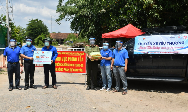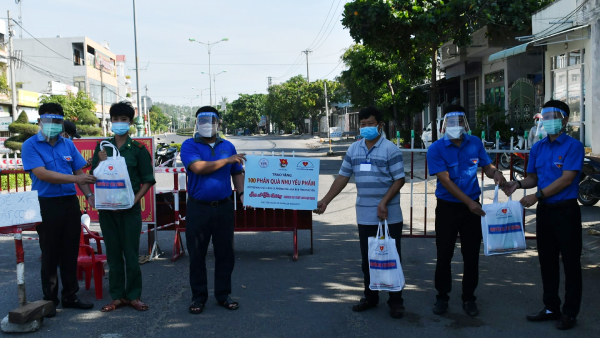 Đoàn trao quà hỗ trợ người dân và các cán bộ chiến sĩ tại xã khu vực phong tỏa do dịch COVID-19 tại xã Bình Kiến (TP Tuy Hòa).
