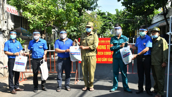 Đoàn trao quà hỗ trợ người dân và các cán bộ chiến sĩ tại xã khu vực phong tỏa do dịch COVID-19 tại phường 2 (TP Tuy Hòa).