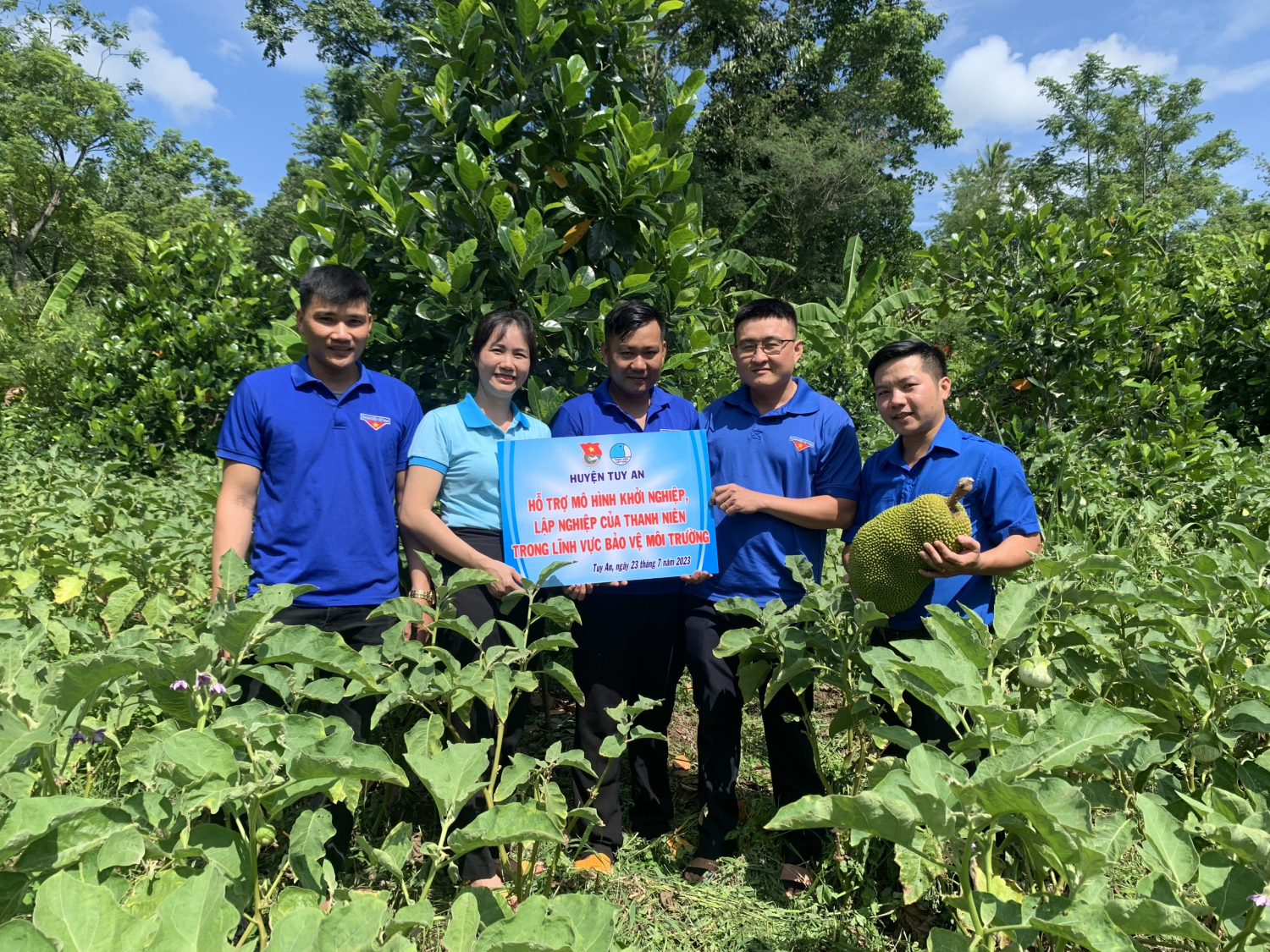 Hưởng ứng hoạt động cao điểm chung tay xây dựng nông thôn mới do Ban thường vụ Tỉnh Đoàn phát động, ngày 23/7/2023, Huyện Đoàn Tuy An tổ chức thăm, động viên và hỗ trợ kinh phí 02 mô hình khởi nghiệp, lập nghiệp của thanh niên trong lĩnh vực bảo vệ môi trường, ứng phó với biến đổi khí hậu.