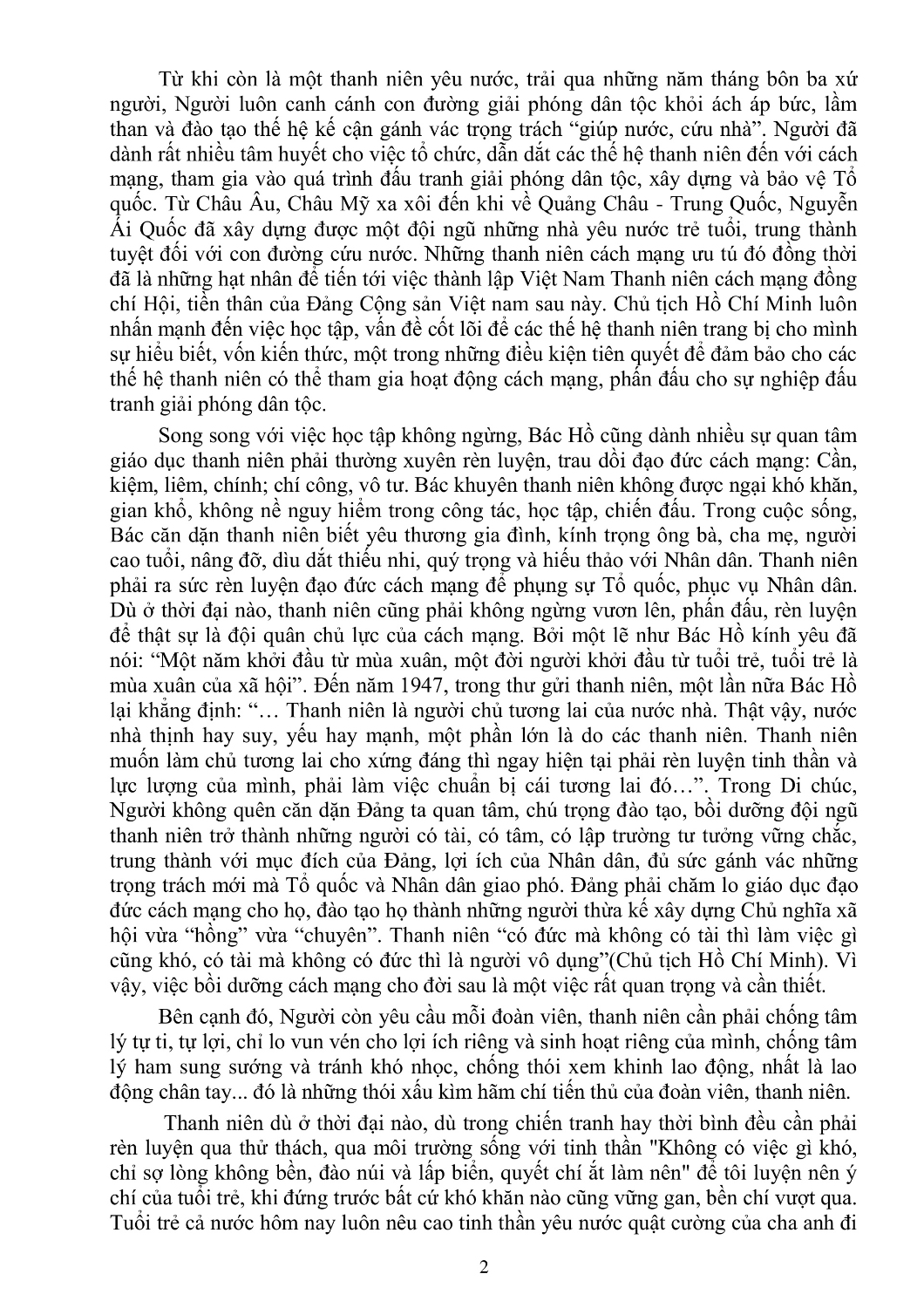 Tài liệu sinh hoạt chi đoàn tháng 3/2018