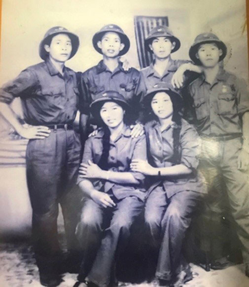 Ông Đỗ Ngọc Ân (bìa trái) cùng đồng đội của Tiểu đoàn 96 năm 1975. Ảnh do nhân vật cung cấp |