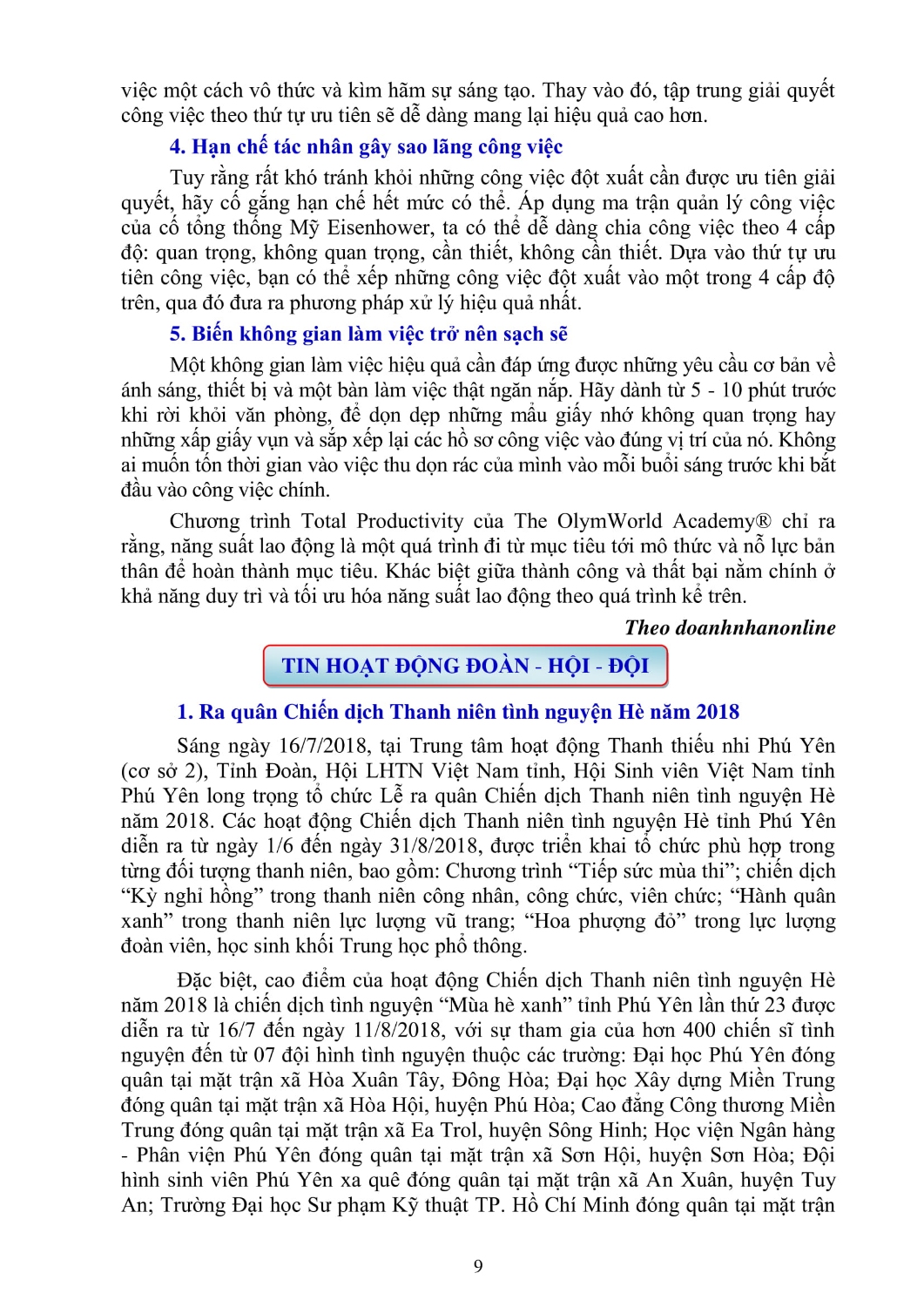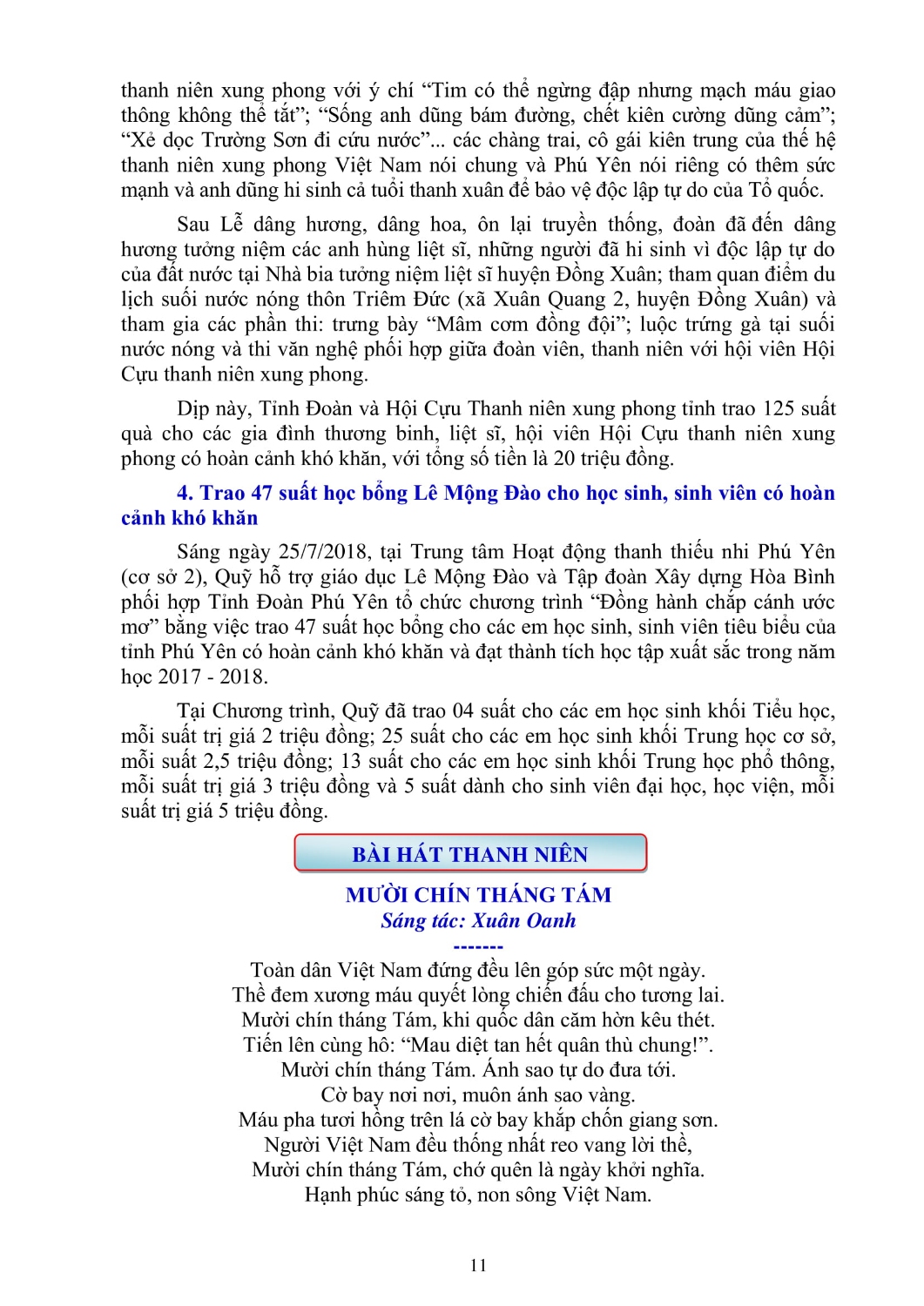 Ban Thường vụ Tỉnh Đoàn ban hành tài liệu sinh hoạt chi đoàn tháng 8/2018. Đề nghị các Huyện, Thị, Thành Đoàn và Đoàn trực thuộc triển khai đến các cấp bộ Đoàn của đơn vị mình.
