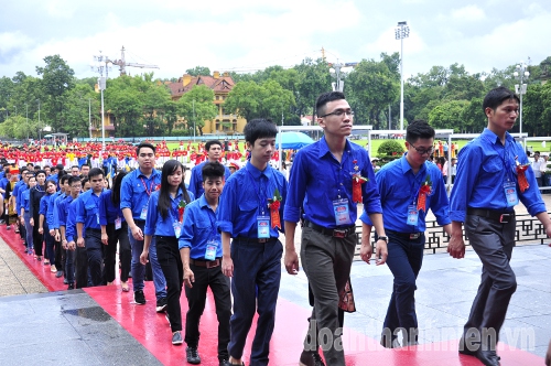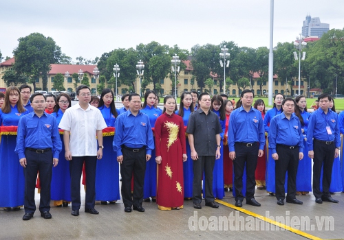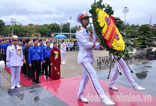 Các đồng chí đại biểu, Ban Bí thư Trung ương Đoàn và đai biểu thanh niên tiên tiến làm theo lời Bác lần thứ IV năm 2016 vào Lăng viếng Chủ tịch Hồ Chí Minh.