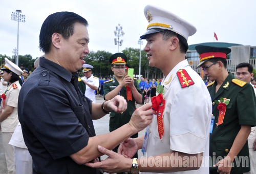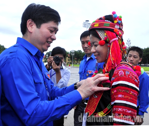 Đồng chí Lê Quốc Phong - Ủy viên dự khuyết BCH Trung ương Đảng, Bí thư thứ nhất BCH Trung ương Đoàn, Chủ tịch Hội Sinh viên Việt Nam trao huy hiệu thanh niên tiên tiến làm theo lời Bác cho các đại biểu thanh niên tiên tiến lần thứ IV - 2016.