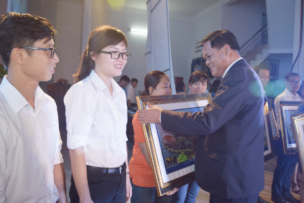 Đ/c Đào Bảo Minh - UVBTV Tỉnh ủy, Trưởng Ban Dân vận Tỉnh ủy và Ban Tổ chức trao giấy công nhận và quà lưu niệm.