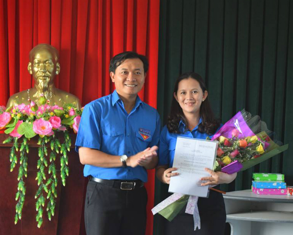 Thừa ủy nhiệm, Đ/c Bùi Thanh Toàn - Bí thư Tỉnh Đoàn trao quyết định và tặng hoa chúc mừng Đ/c Bùi Thị Hồng Tâm