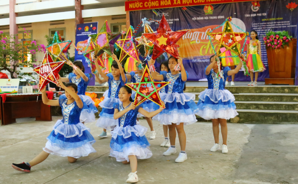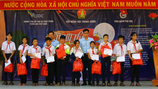 Dịp này, Hội đồng Đội Trung ương, Trung tâm Hỗ trợ và Phát triển thiếu nhi Việt Nam đã trao gần 800 suất quà Trung thu gồm bánh, sữa cho các em thiếu nhi, học sinh của trường; tặng 01 tủ sách Kim Đồng và 01 bộ trống Đội; tặng gần 4 nghìn tập vở; khăn quàng đỏ, áo trắng, sách giáo khoa, xà phòng, thuốc khử khuẩn và nhiều vật phẩm khác…. cho Liên đội Trường THCS Huỳnh Thúc Kháng; tặng 10 suất học bổng cho 10 em học sinh có hoàn cảnh khó khăn vươn lên trong học tập, mỗi suất là 500 nghìn đồng. Tổng kinh phí là hơn 200 triệu đồng, với sự hỗ trợ của các đơn vị: Ngân hàng Thương mại cổ phần Công thương Việt Nam - Vietinbank, Công ty Suntory PepsicoVietNam Beverage; Công ty cổ phần thực phẩm dinh dưỡng Nutifood, Công ty cổ phần thực phẩm One One Việt Nam, Nhà xuất bản Kim Đồng và nhiều đơn vị khác.