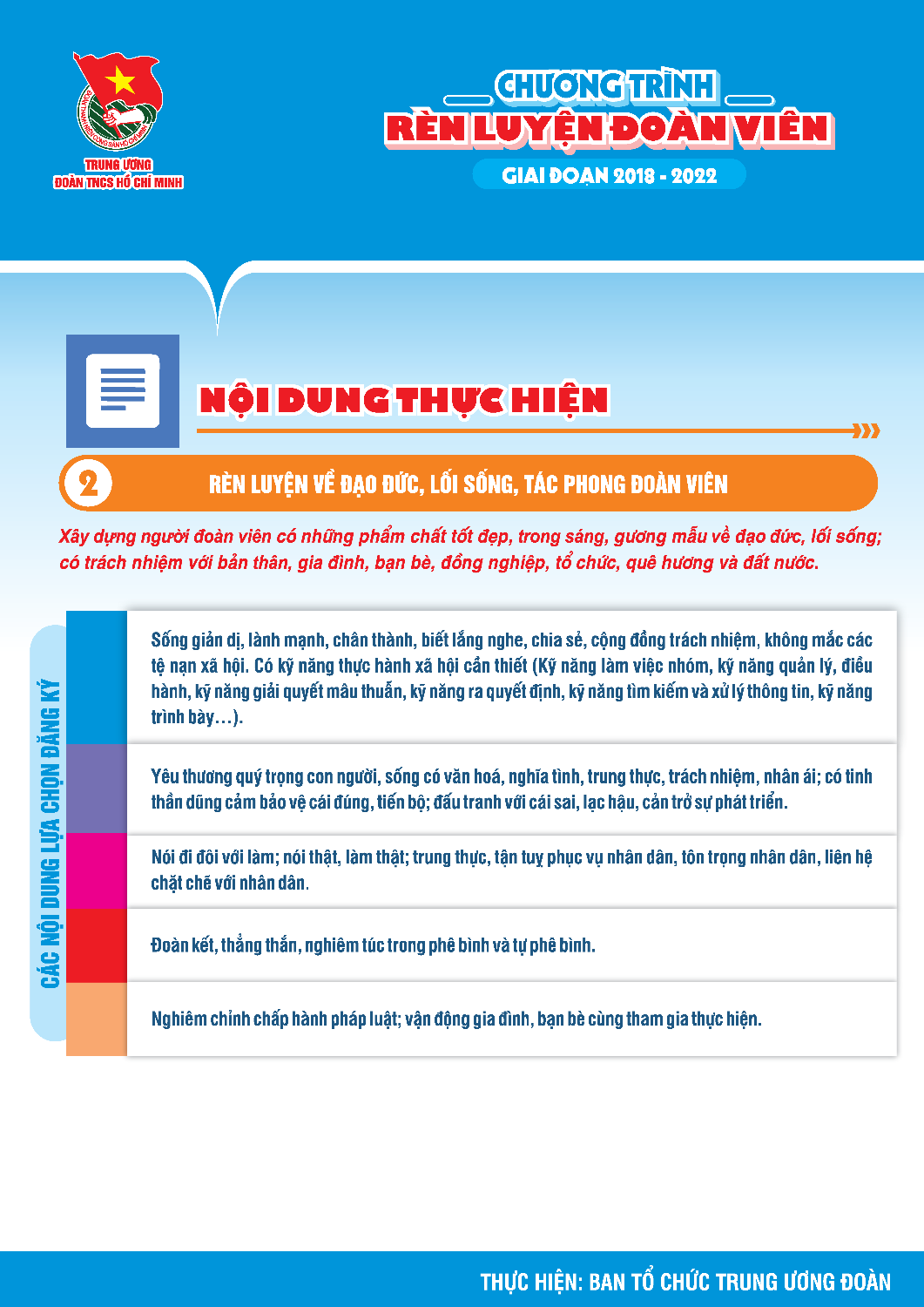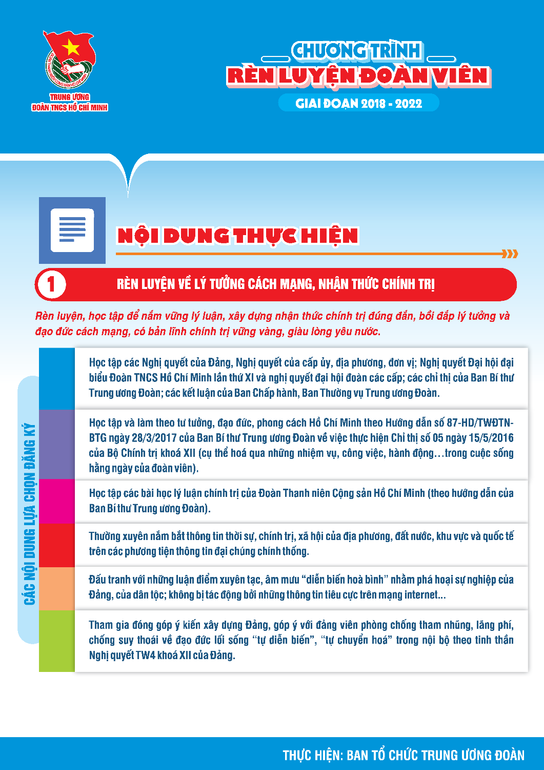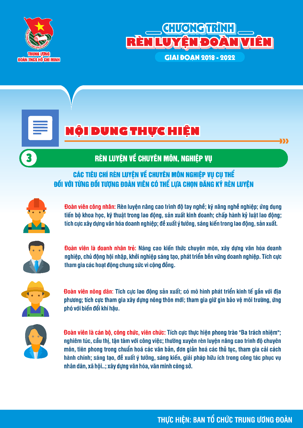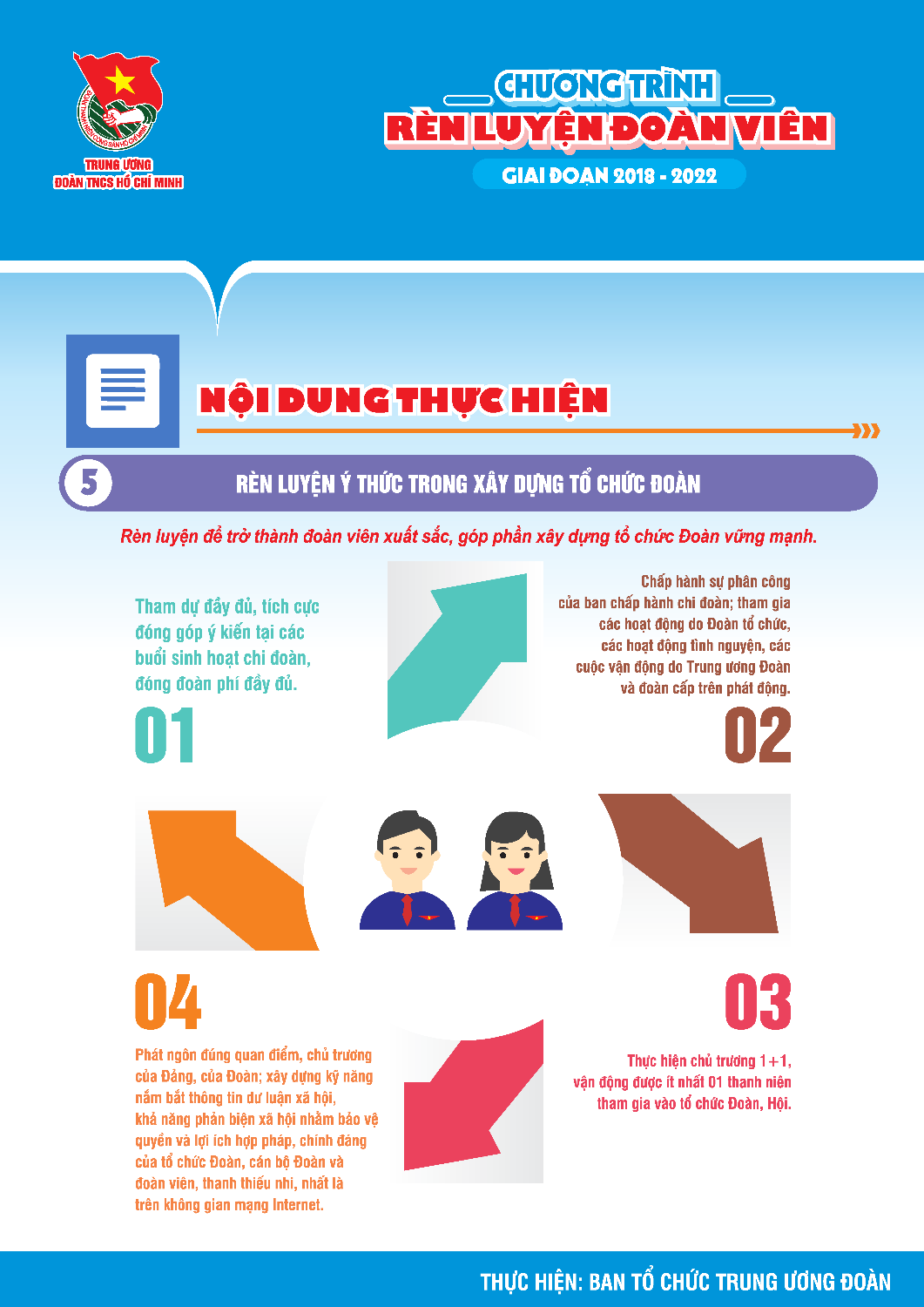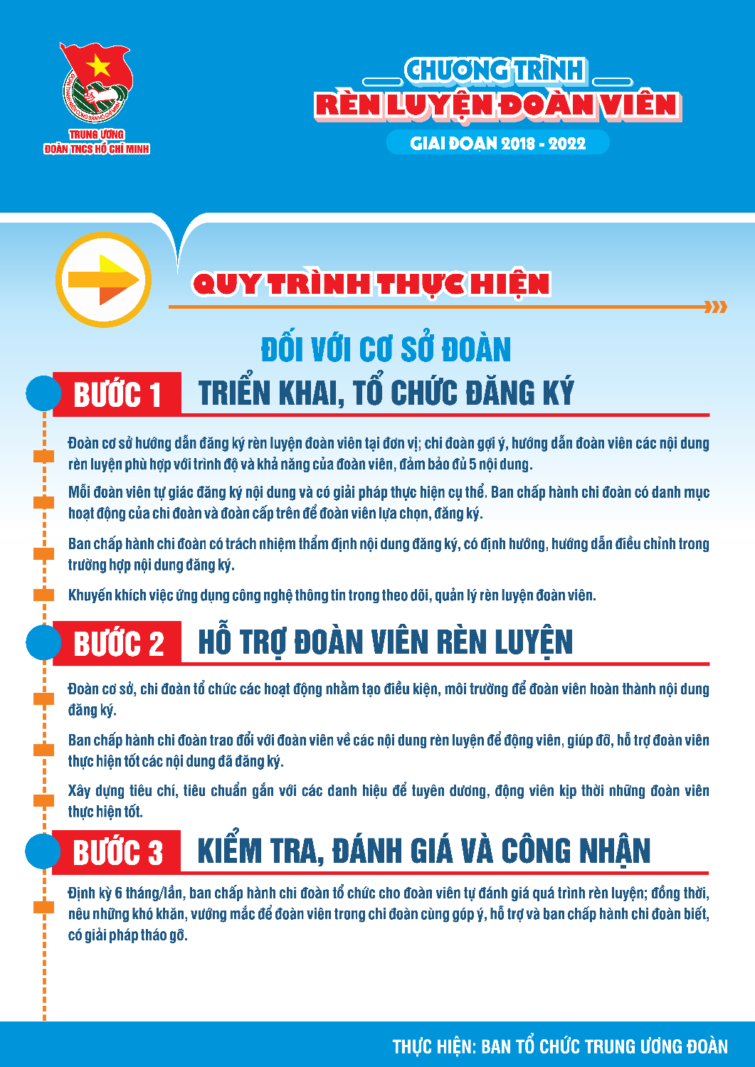 Ban Biên tập website trân trọng gửi đến các bạn đoàn viên, thanh niên Hướng dẫn thực hiện Chương trình rèn luyện Đoàn viên giai đoạn 2018-2022 thông qua bộ công cụ Infographic do Ban Tổ chức Trung ương Đoàn cung cấp.