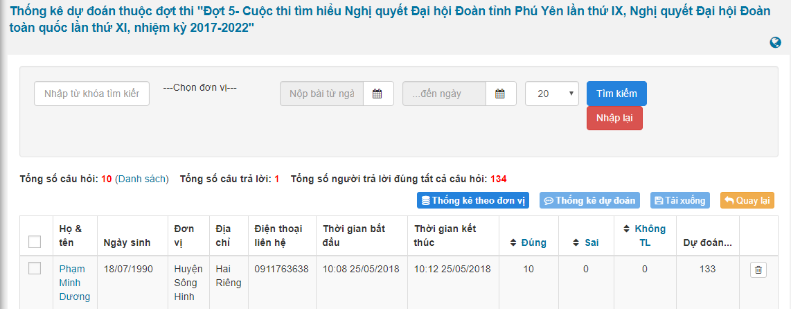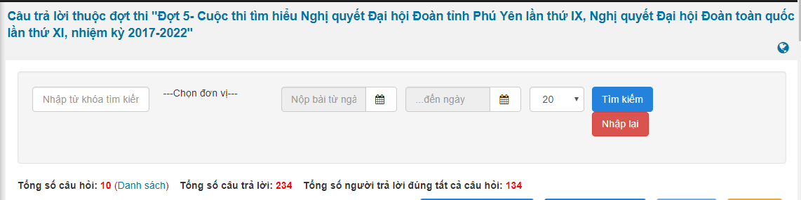 234 lượt đoàn viên thanh niên tham gia trả lời, trong đó tổng số người trả lời đúng tất cả 10 câu hỏi là