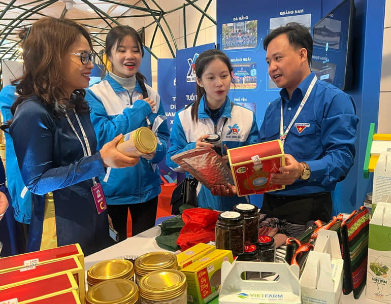 Thanh niên Phú Yên giới thiệu sản phẩm khởi nghiệp sáng tạo của thanh niên tại triển lãm.