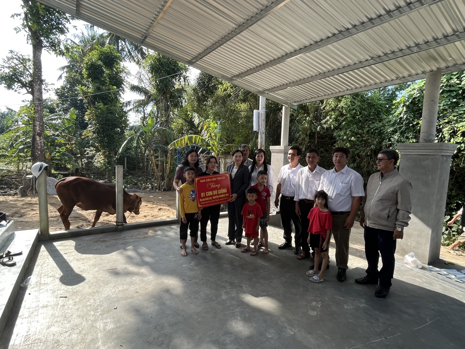Ban Dân vận Tỉnh ủy tặng 01 con bò giống cho hộ gia đình chị Nguyễn Phượng Thúy.