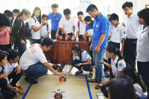ĐVTN àm quen với lập trình Robitics với thời đại công nghiệp 4.0 tại Ngày hội “Tuổi trẻ sáng tạo” năm 2018.