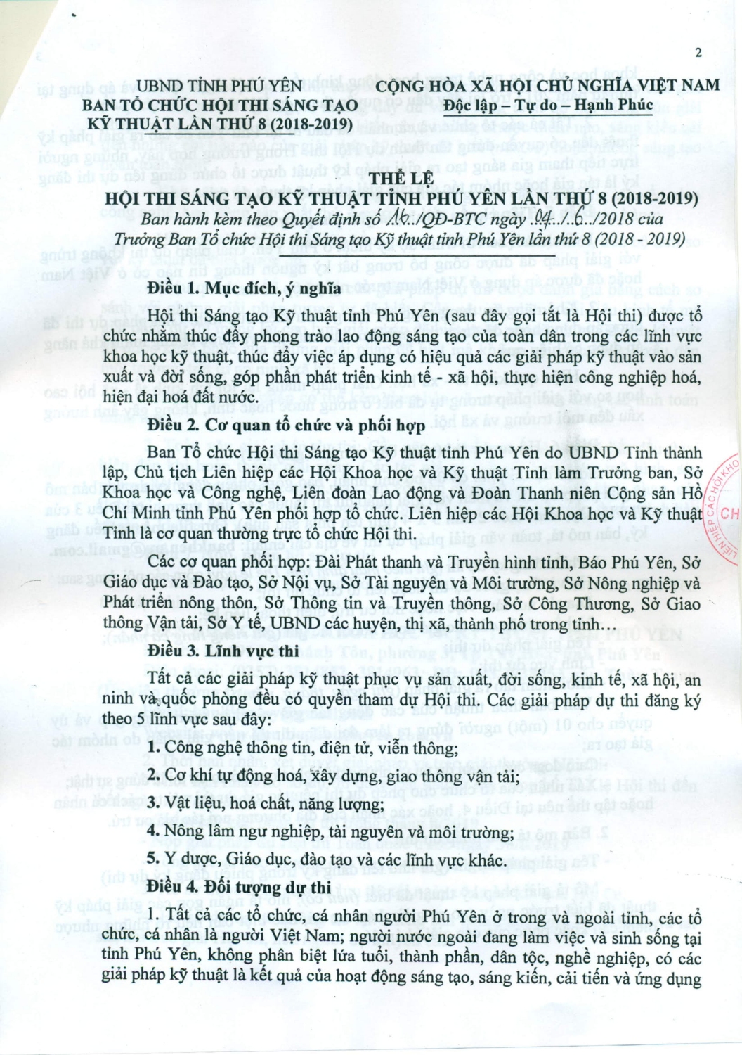 Thông báo tham gia Hội thi Sáng tạo Kỹ thuật tỉnh Phú Yên Lần thứ 8 (2018 - 2019)