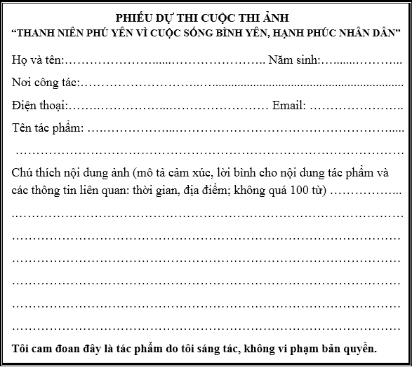 - Phía sau mỗi ảnh có dán phiếu tác phẩm được điền đầy đủ thông tin theo mẫu gửi kèm.